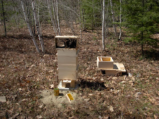 Within five min. or so they had settled in to their new home. I left the queen in the cage for a couple of hours so they wouldn't move out.